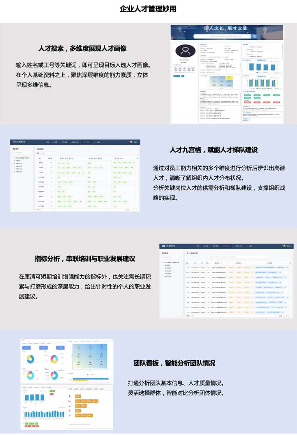 支持總進度、個人測評進度可視化, 支持員工人才畫像的描述、發(fā)展建議等